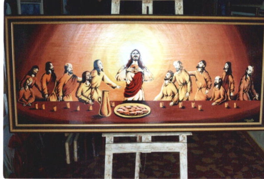 em atelier montado dentro de uma igreja em construção, que ficou pronta junto com os quadros....